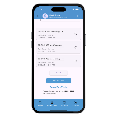 • - Caregivers & Clients: Have the ability to sign up, view and modify bookings, request callbacks, and access resources like training and support materials